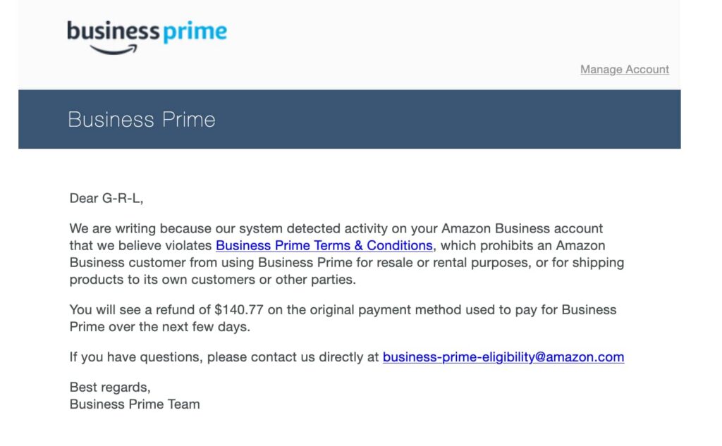 I was saturating the annualized 5% points-back limit from our American Express Amazon Business Prime Card until tragedy struck: our Business Prime membership was canceled without notice. I’m assuming it was due to redeeming all the points for Airbnb and Booking.com stays (gift cards are viewed as high-risk or a resold item). An Amazon script was making decisions with no real human involved and absolutely no way to resolve the issue. Even with assistance from an AWS Sr. Program Manager getting involved to no avail, it was clear we’d be shit out of luck in an actual emergency.